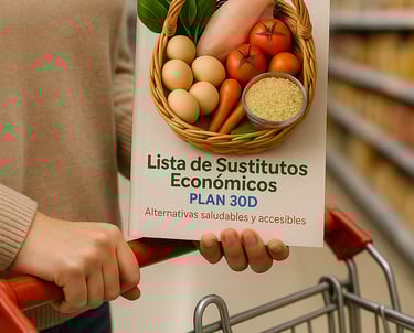 🎁 Bono 2: Lista de sustitutos económicos → Demuestra que comer sin gluten ni azúcar no tiene por qué ser caro.