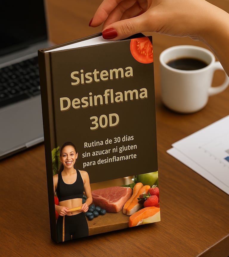 Con Desinflama 30 obtienes un plan práctico y probado, sin gluten ni azúcar, que reduce inflamación y cansancio en menos de un mes… sin pasar horas en la cocina ni gastar fortunas en productos especiales.